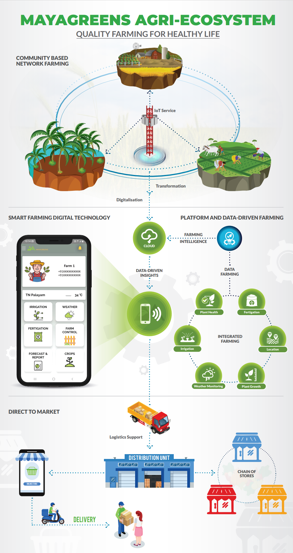 - Building a community and enabling a comprehensive network for farmers through Mayagreens’ IoT-based products;